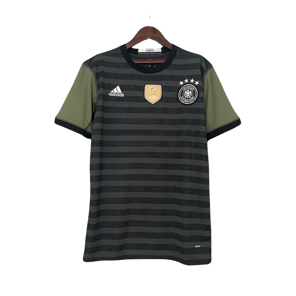 Camisa Retrô Seleção da Alemanha II 2016, Camisa Adidas Masculina, Camisa Preta com detalhes em verde, Camisa da Seleção Alemã, Camisa de Futebol Retrô, Camisa da Alemanha 2016, Camisa Masculina de Futebol, Camisa Retrô Adidas, Roupas de Futebol Masculinas, Camisa da Seleção Alemã para Torcedor, Camisa de Futebol Preta, Camisa com detalhes em verde, Camisa Retrô para Colecionadores, Camisa da Alemanha para Jogos, Camisa Adidas para Torcedores
