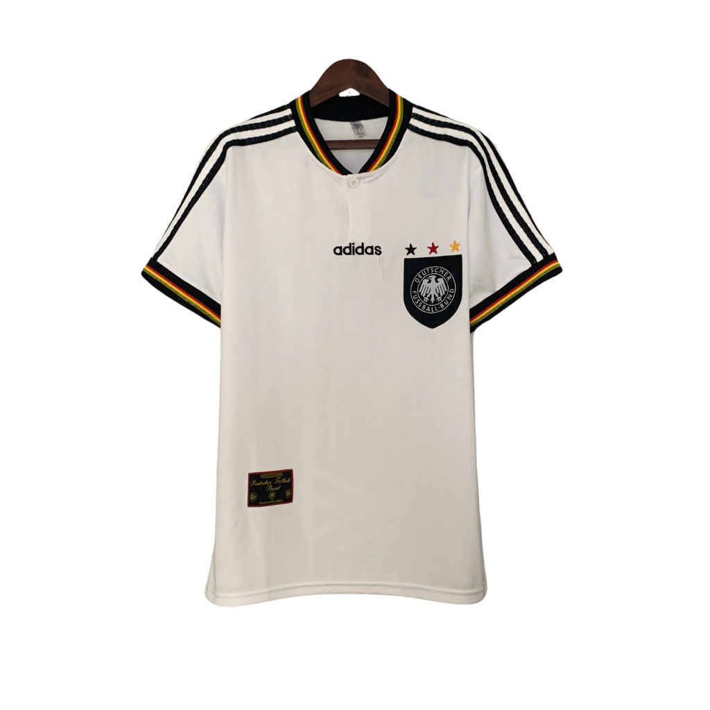 Camisa retrô da Seleção da Alemanha, Camisa Adidas 1996 masculina, Camisa branca da Alemanha 1996, Camisa retrô para torcedores, Camisa da Seleção Alemã, Camisa de futebol retrô, Camisa vintage da Alemanha, Camisa da Copa do Mundo 1996, Camisa Adidas original, Camisa de futebol branca masculina, Camisa retrô para colecionadores, Camisa da Seleção da Alemanha para homens, Camisa da Alemanha para fãs de futebol, Camisa de futebol clássica, Camisa retrô da Adidas para homens