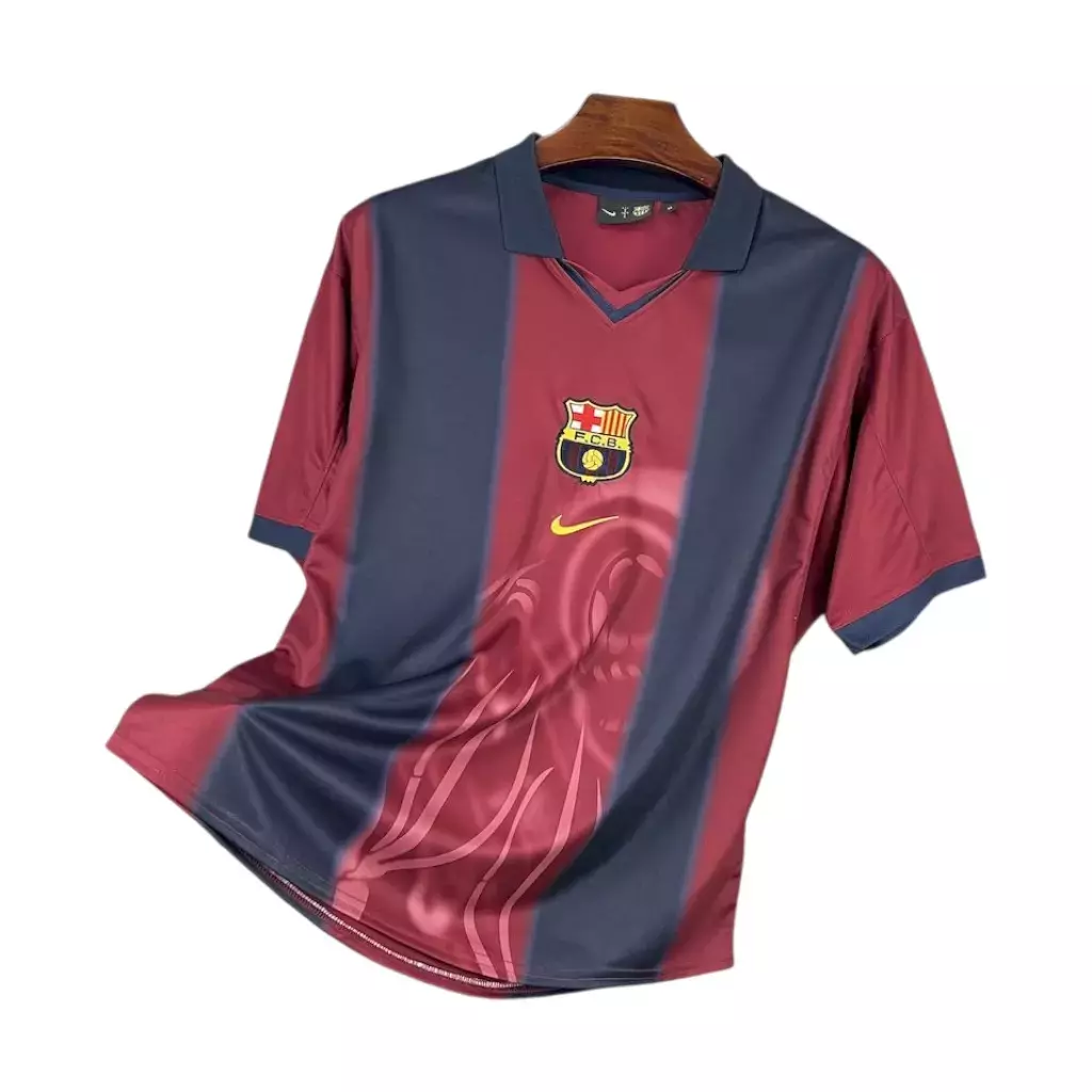 Vista uma peça que transcende o tempo e une duas lendas: a Camisa Barcelona 1998 x Travis Scott Retrô - Azul e Vermelha! Esta não é apenas uma camisa; é um mashup cultural, celebrando a glória do Barça de 1998 com a estética arrojada e inovadora do ícone Travis Scott. Imagine-se no Camp Nou daquela época, sentindo a nostalgia de um período icônico, ou exibindo com orgulho este manto por onde for em Arujá, no Brasil. O design clássico em azul e vermelho, cores vibrantes da tradição catalã, ganha um toque disruptivo que faz desta peça um item indispensável para colecionadores e para quem vive a paixão por futebol e moda streetwear.