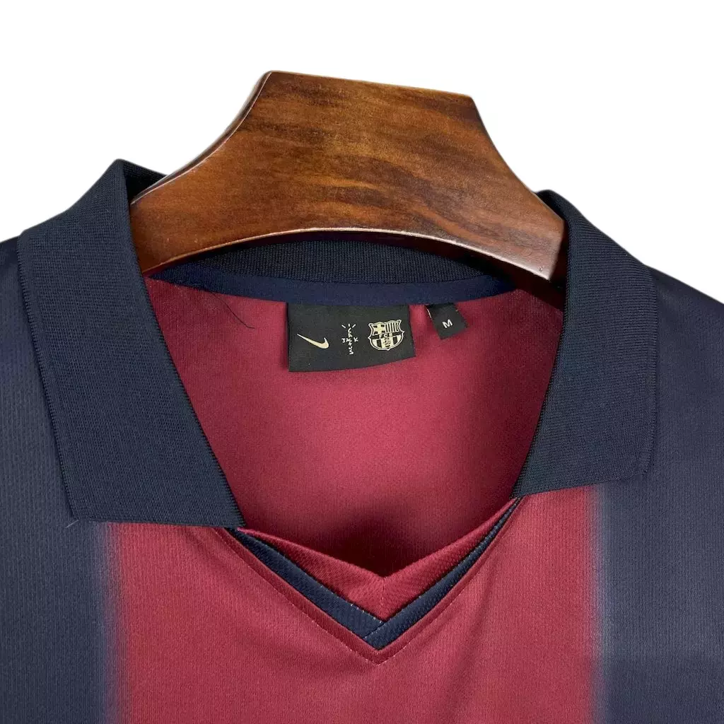 Garanta já a sua Camisa Barcelona 1998 x Travis Scott Retrô - Azul e Vermelha e celebre a fusão perfeita entre o passado e o presente do Barça! Sinta a história na pele e mostre seu amor por um dos clubes mais emblemáticos do mundo com um estilo inconfundível. Esta é a sua chance de ter um pedaço único da cultura do futebol e da moda.