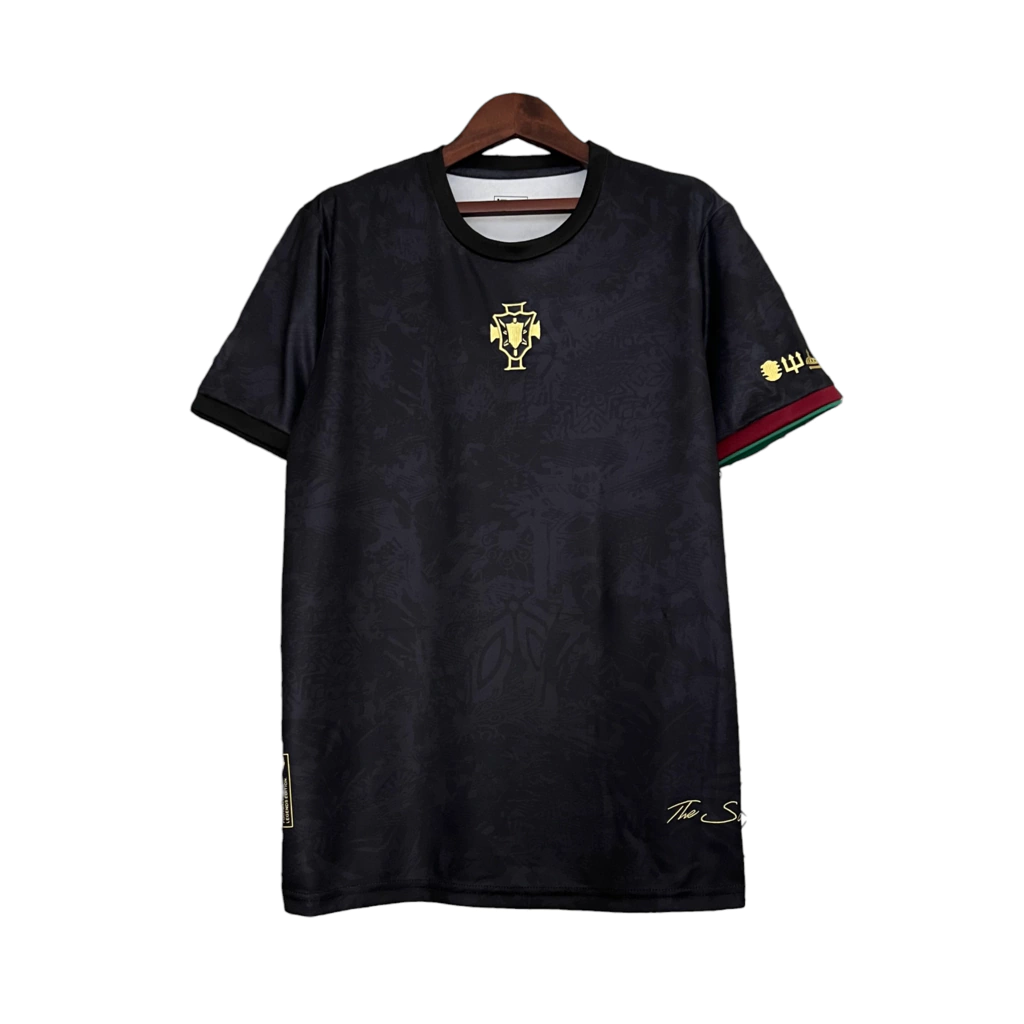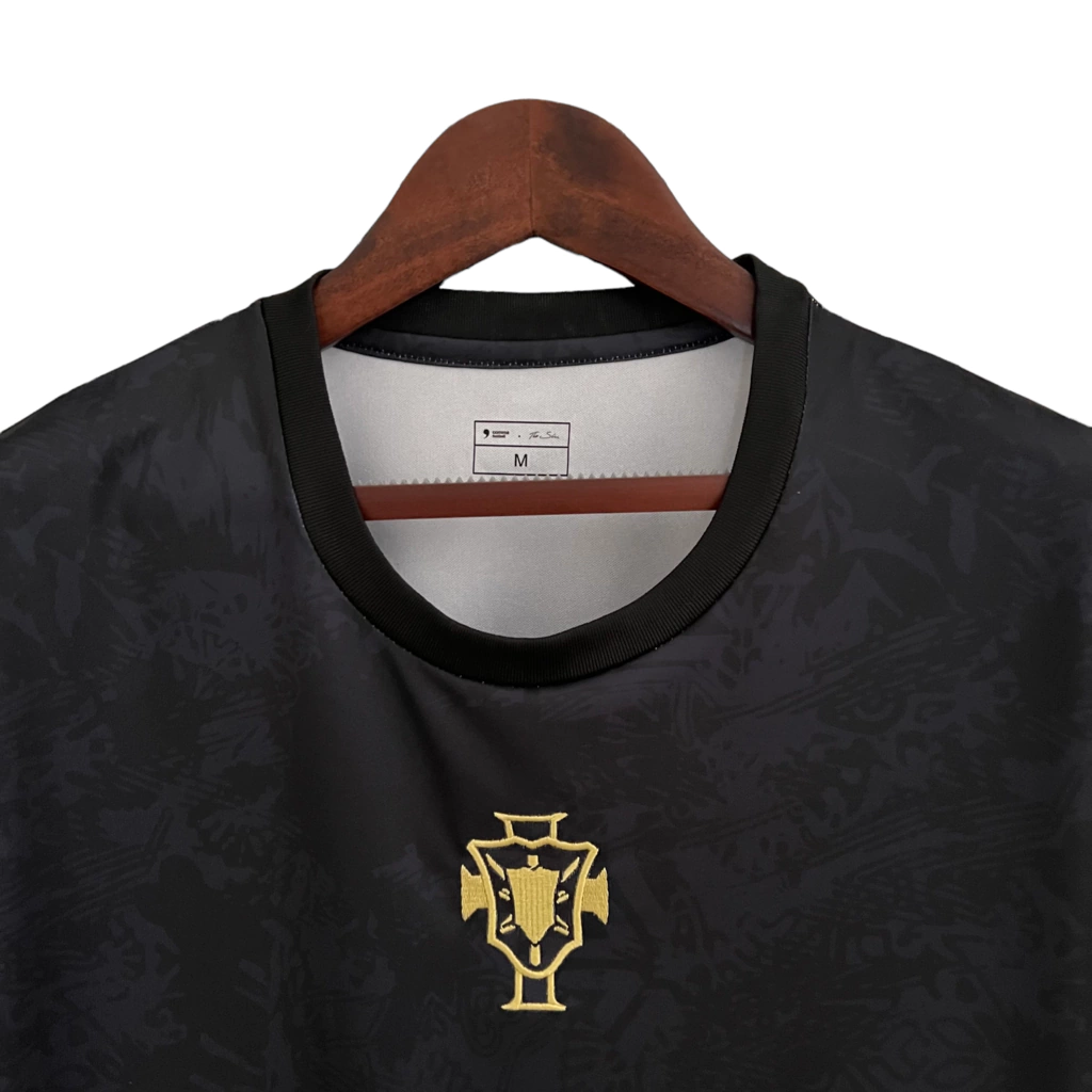 Camisa Seleção de Portugal Edição Goat 23/24, Camisa de torcedor masculina Portugal, Camisa preta Seleção de Portugal, Camisa com detalhes em vermelho e dourado, Camisa de futebol Portugal 2023, Compra camisa Seleção de Portugal, Camisa oficial Portugal 23/24, Roupas de torcedor Portugal, Camisa de jogo Seleção de Portugal, Edição especial camisa Portugal, Camisa Seleção Portugal para homens, Camisa de futebol para torcedores, Camisa Portugal estilo moderno, Camisa de futebol com design exclusivo, Camisa Seleção de Portugal para coleção