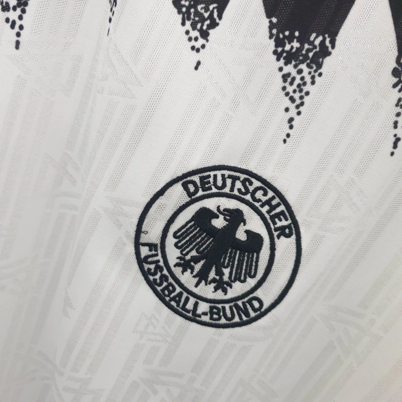 Camisa Retrô Seleção da Alemanha I 1994, Camisa Masculina Adidas, Camisa Branca com detalhes em amarelo e vermelho, Camisa da Seleção Alemã 1994, Camisa Retrô Adidas, Moda esportiva masculina, Camisa de futebol retrô, Camisa da Alemanha para colecionadores, Camisa da Copa do Mundo 1994, Estilo retrô para torcedores, Camisa clássica da Seleção Alemã, Camisa de futebol branca com detalhes coloridos, Presentes para fãs de futebol, Roupas de times de futebol, Camisa da Alemanha para uso casual